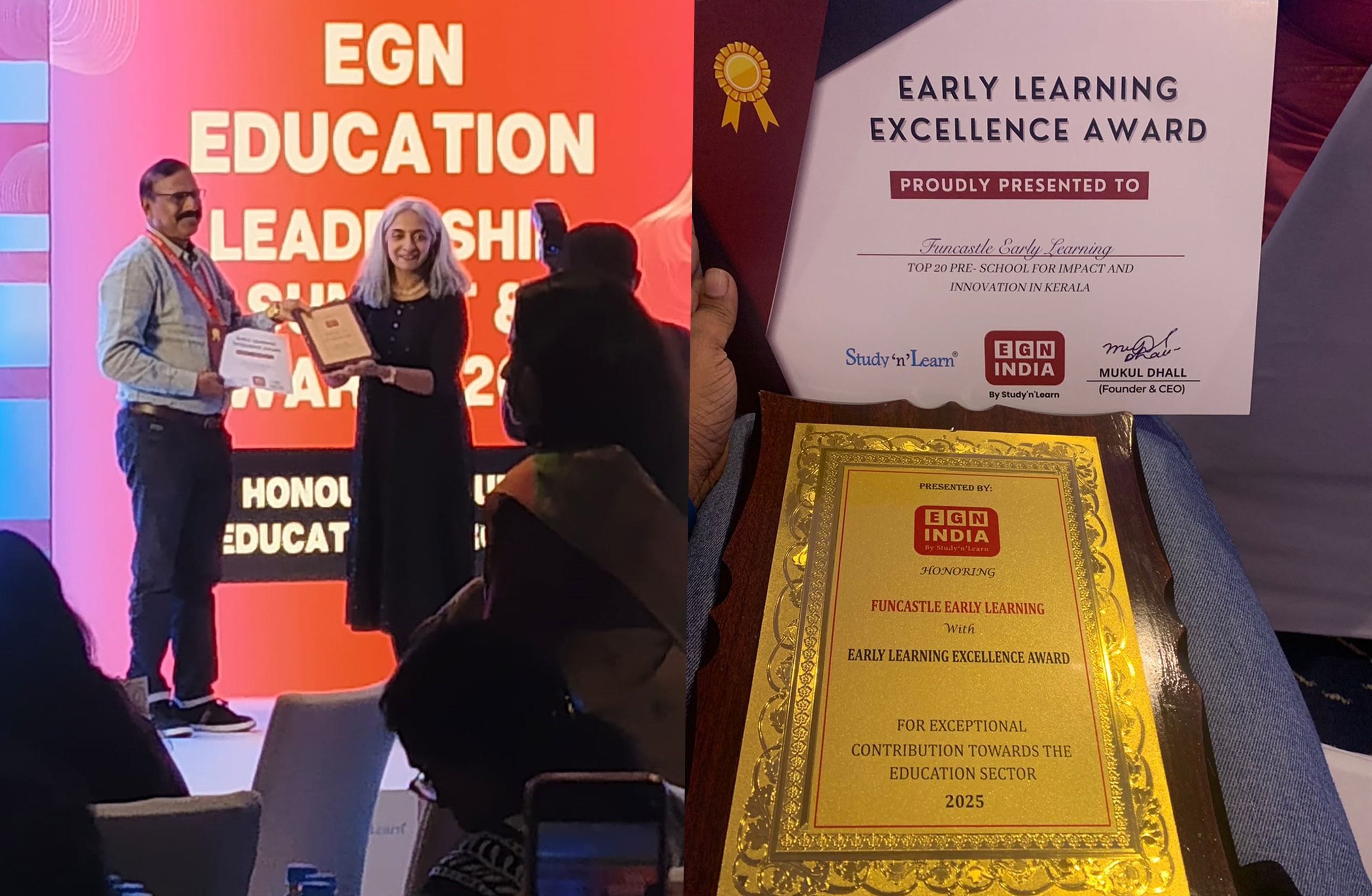 Fun Castle Early Learning is honored to be a confirmed awardee at the EGN Education Leadership Summit & Awards 2025, to be held on 28 June 2025 at Le Méridien, Kochi. This recognition celebrates our sustained impact in early childhood education—building an active, play-based learning culture with intentionally planned classrooms, the Mind Spark Curriculum, and a focus on seven key development areas (cognitive, fine & gross motor, language, personal awareness, socio-emotional growth, and nurturing individual potential). It also acknowledges our extended-hours Daycare, After-School Care & Homework Club, and our team of qualified teachers who deliver safe, caring, and high-quality learning experiences.
